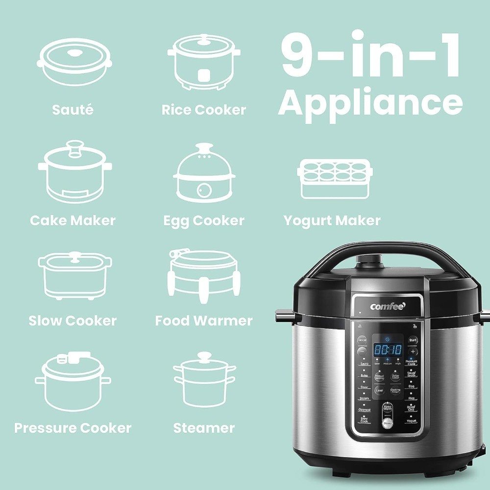 COMFEE' Pressure Cooker 6 Quart with 12 Presets, Multi-Functional Programmable Slow Cooker, Rice Cooker, Steamer, Sauté pan, COMFEE' Pressure Cooker 6 Quart with 12 Presets, Multi-Functional Programmable Slow Cooker, Rice Cooker, Steamer, Sauté pan, COMFEE' Pressure Cooker 6 Quart with 12 Presets, Multi-Functional Programmable Slow Cooker, Rice Cooker, Steamer, Sauté pan,