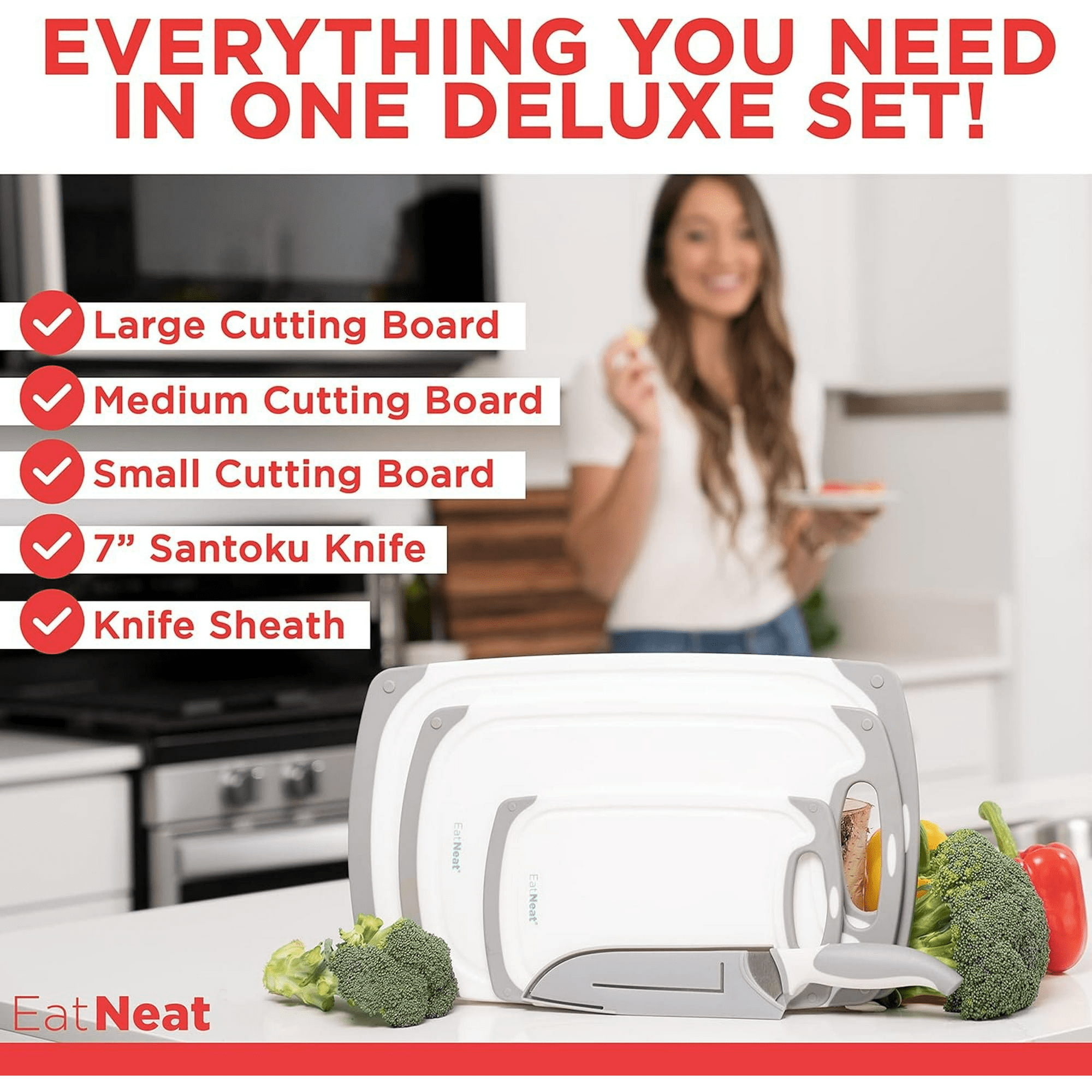 Premium quality materials: crafted from high-grade stainless steel, our knife set ensures durability and precision cutting, while the cutting boards are designed for long-lasting use and easy maintenance.