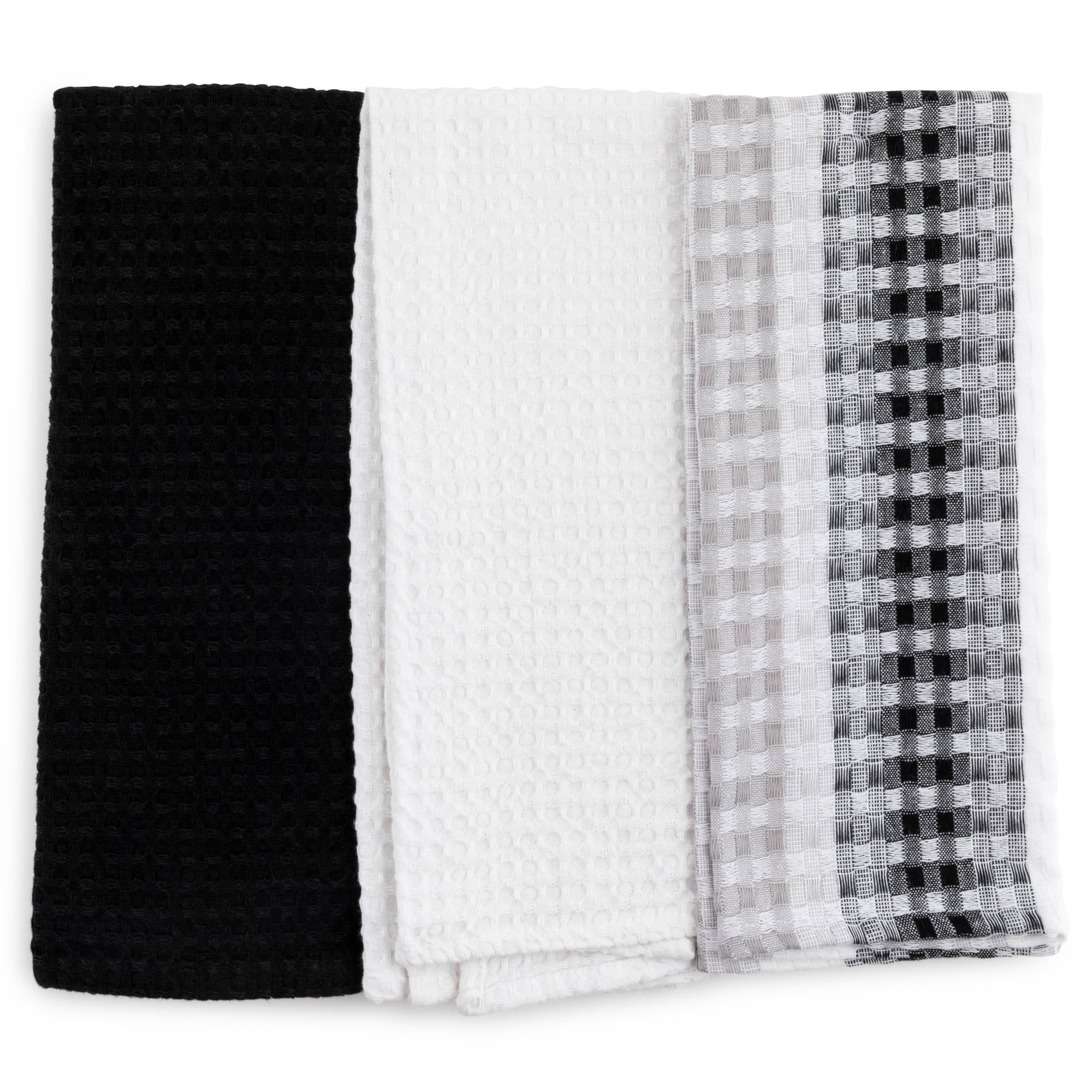 Thyme & Table Cotton Waffle Kitchen Towels, Black White, 3-Piece Set