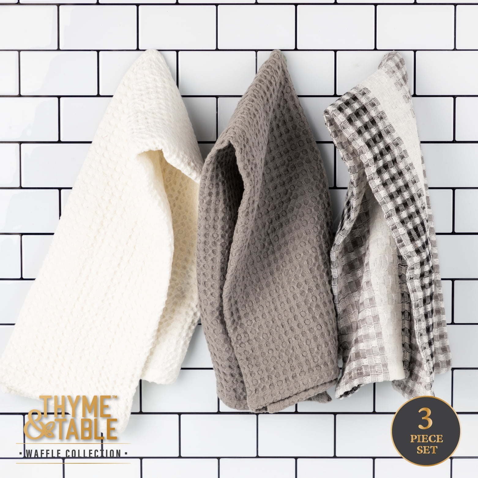 Thyme & Table Cotton Waffle Kitchen Towels, Black White, 3-Piece Set Thyme & Table Cotton Waffle Kitchen Towels, Black White, 3-Piece Set Thyme & Table Cotton Waffle Kitchen Towels, Black White, 3-Piece Set