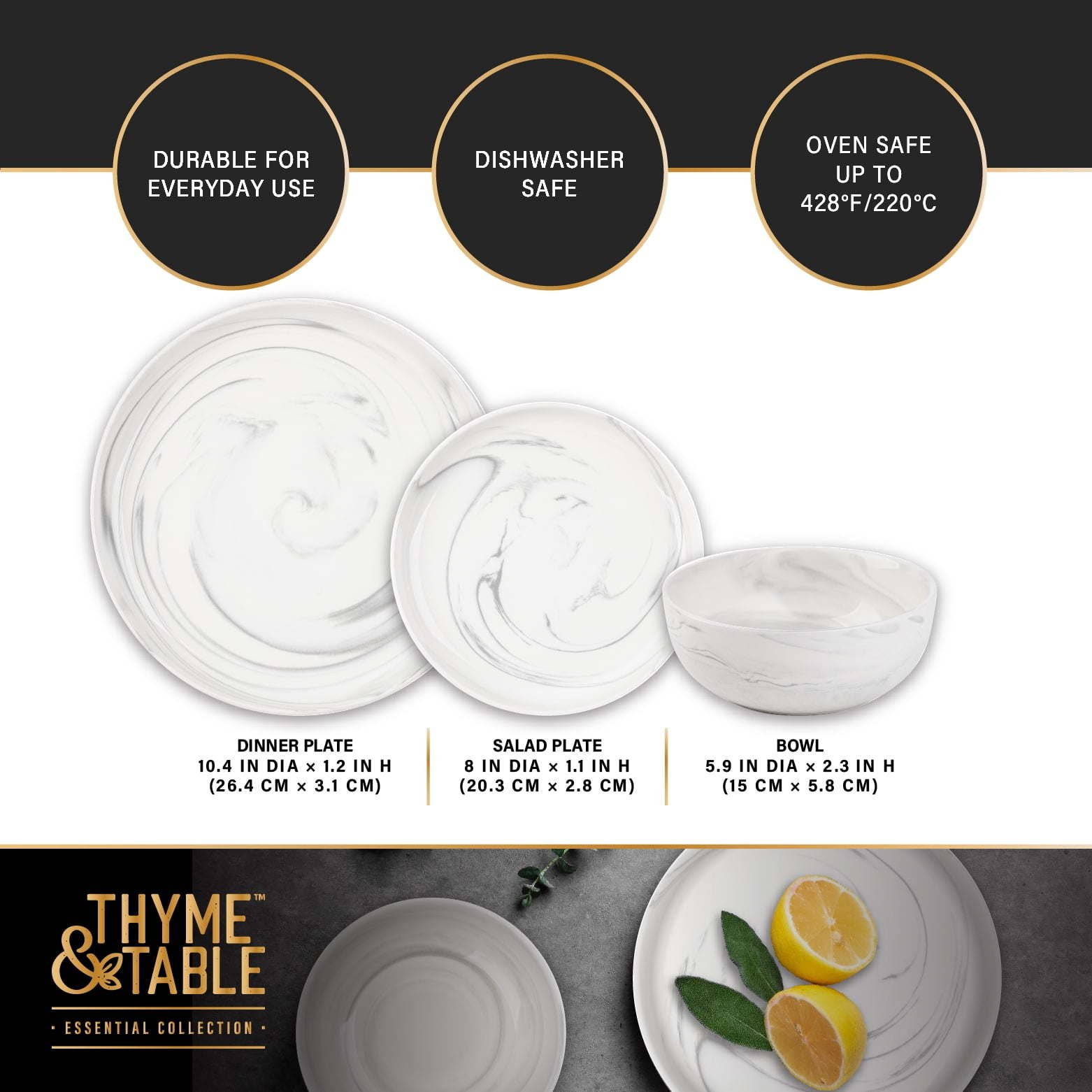 Thyme & Table Grey Marble Stoneware Dinnerware Set; Add a touch of elegance to your dining experience with the Thyme & Table Grey Marble Stoneware Dinnerware Set. Elevate your table setting with this modern and versatile dinnerware set, ideal for any kitchen or dining room. Whether you're hosting a dinner party or enjoying a family meal, the Thyme & Table Grey Marble Stoneware Dinnerware Set is sure to impress.