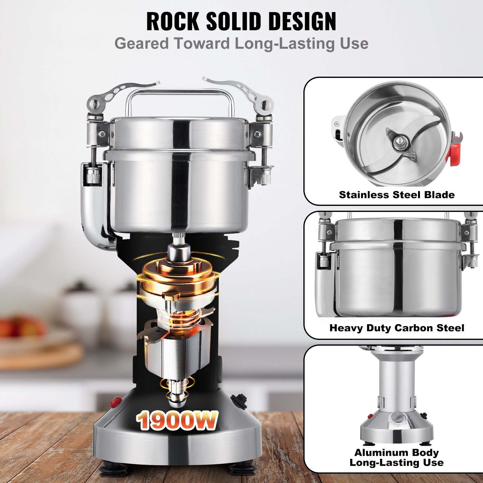 VEVOR 300g Electric Grain Mill Grinder, High Speed 1900W Commercial Spice Grinders, Stainless Steel Pulverizer Powder Machine VEVOR 300g Electric Grain Mill Grinder, High Speed 1900W Commercial Spice Grinders, Stainless Steel Pulverizer Powder Machine VEVOR 300g Electric Grain Mill Grinder, High Speed 1900W Commercial Spice Grinders, Stainless Steel Pulverizer Powder Machine